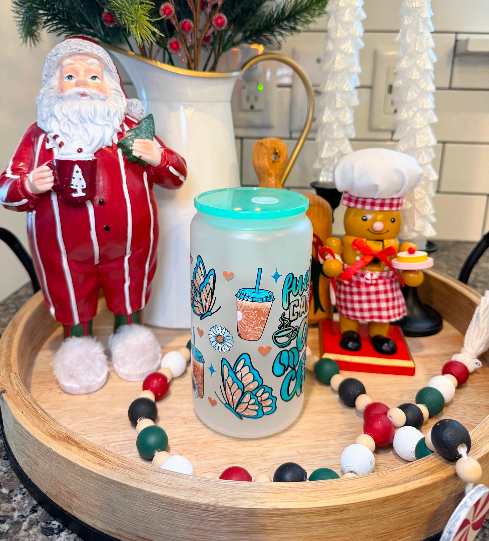 Sip in style with our Caffeine & Chaos 16oz frosted glass cup. The perfect mix of trendy and practical! Each cup features a high quality DTF wrap that’s vibrant, long-lasting, and made to stand out. Whether it’s your iced coffee, iced water or favorite cold drink, this glass is your new go to for any occasion. Perfect for gifts, iced coffee lovers, or anyone who enjoys a cute and functional cup!