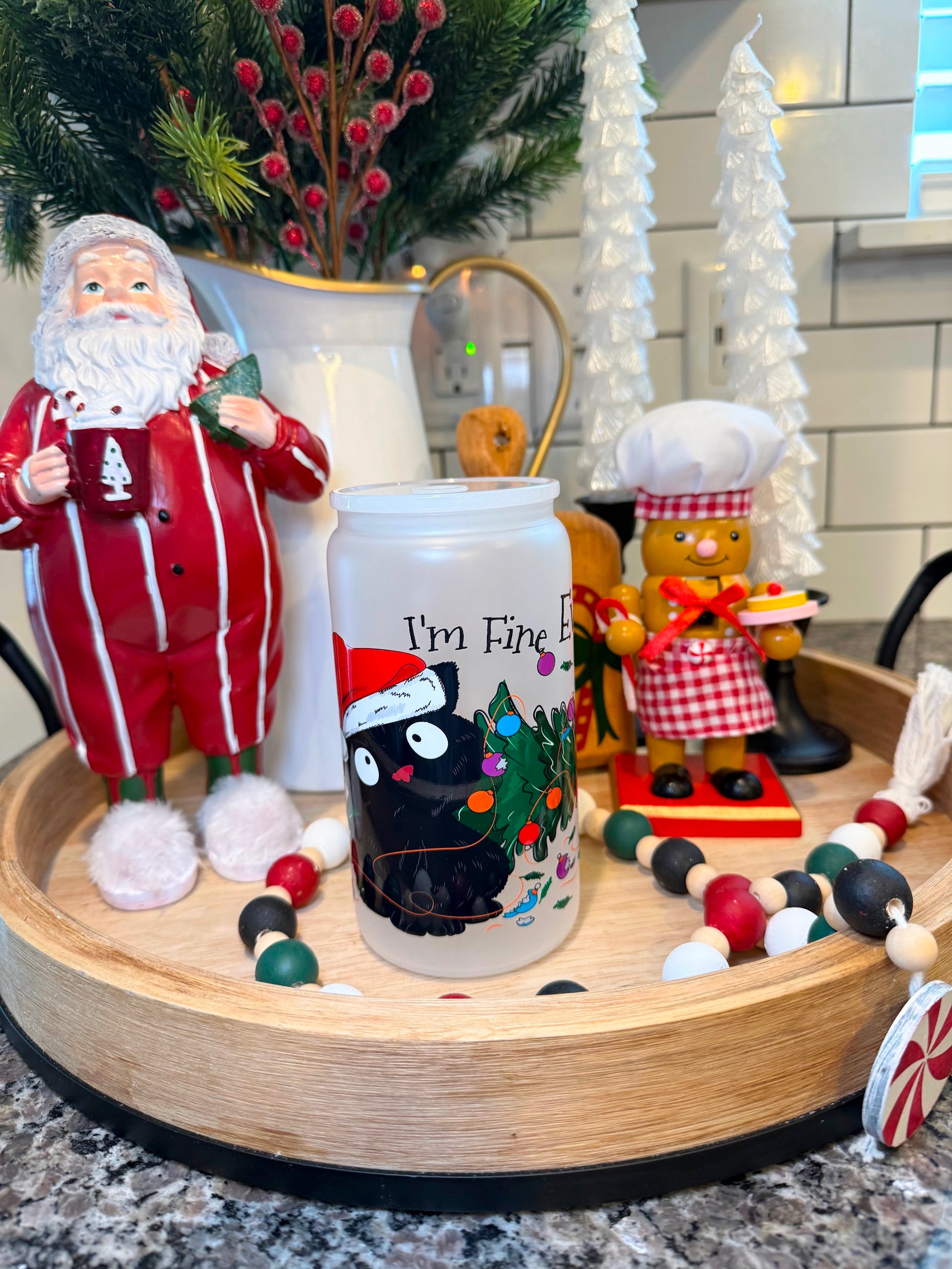 Sip in style with our Everythings Fine 16oz frosted glass cup. The perfect mix of trendy and practical! Each cup features a high quality DTF wrap that’s vibrant, long-lasting, and made to stand out. Whether it’s your iced coffee, iced water or favorite cold drink, this glass is your new go to for any occasion. Perfect for gifts, iced coffee lovers, or anyone who enjoys a cute and functional cup!