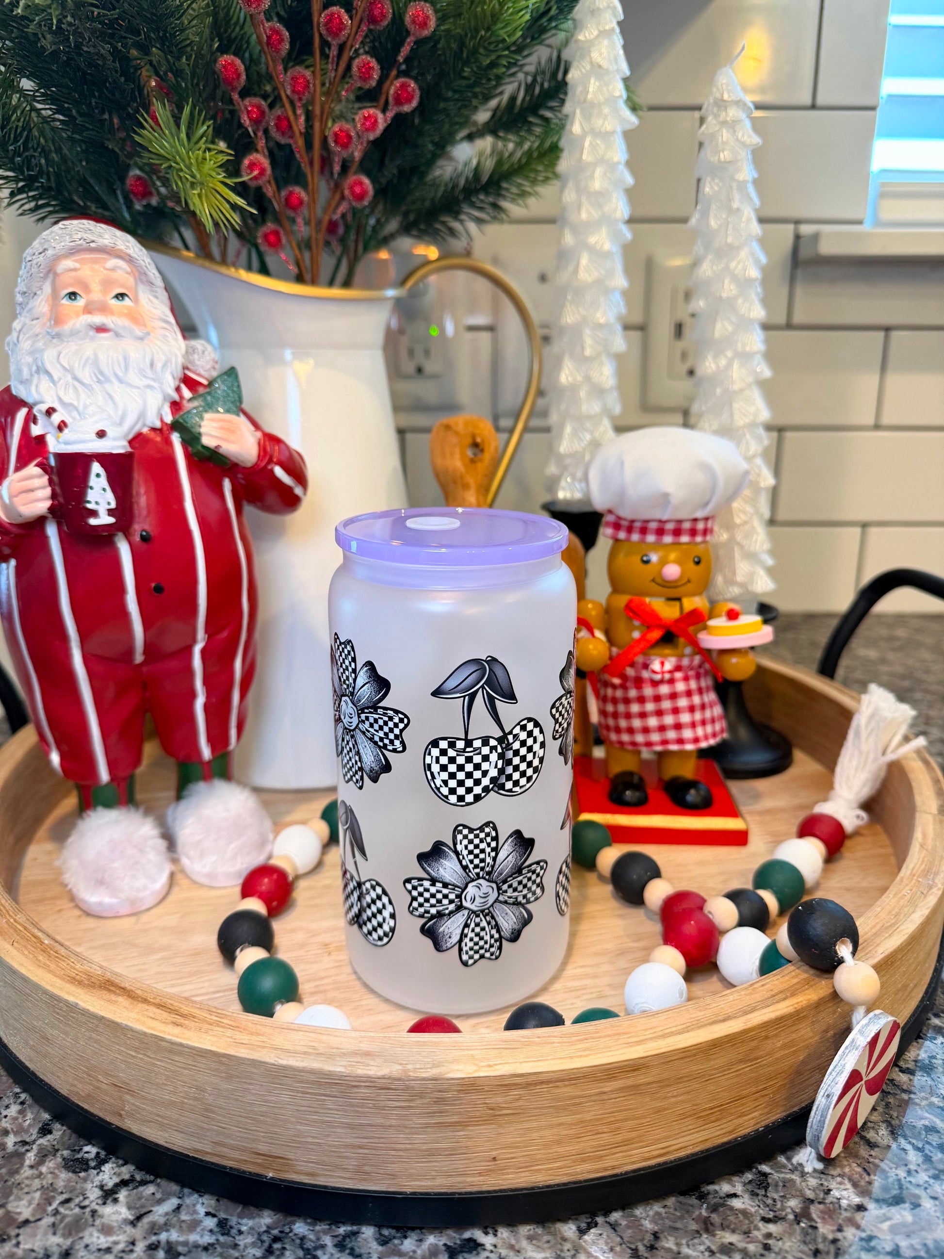 Retro Cherry | 16oz Frosted Glass Cup | 1 Available