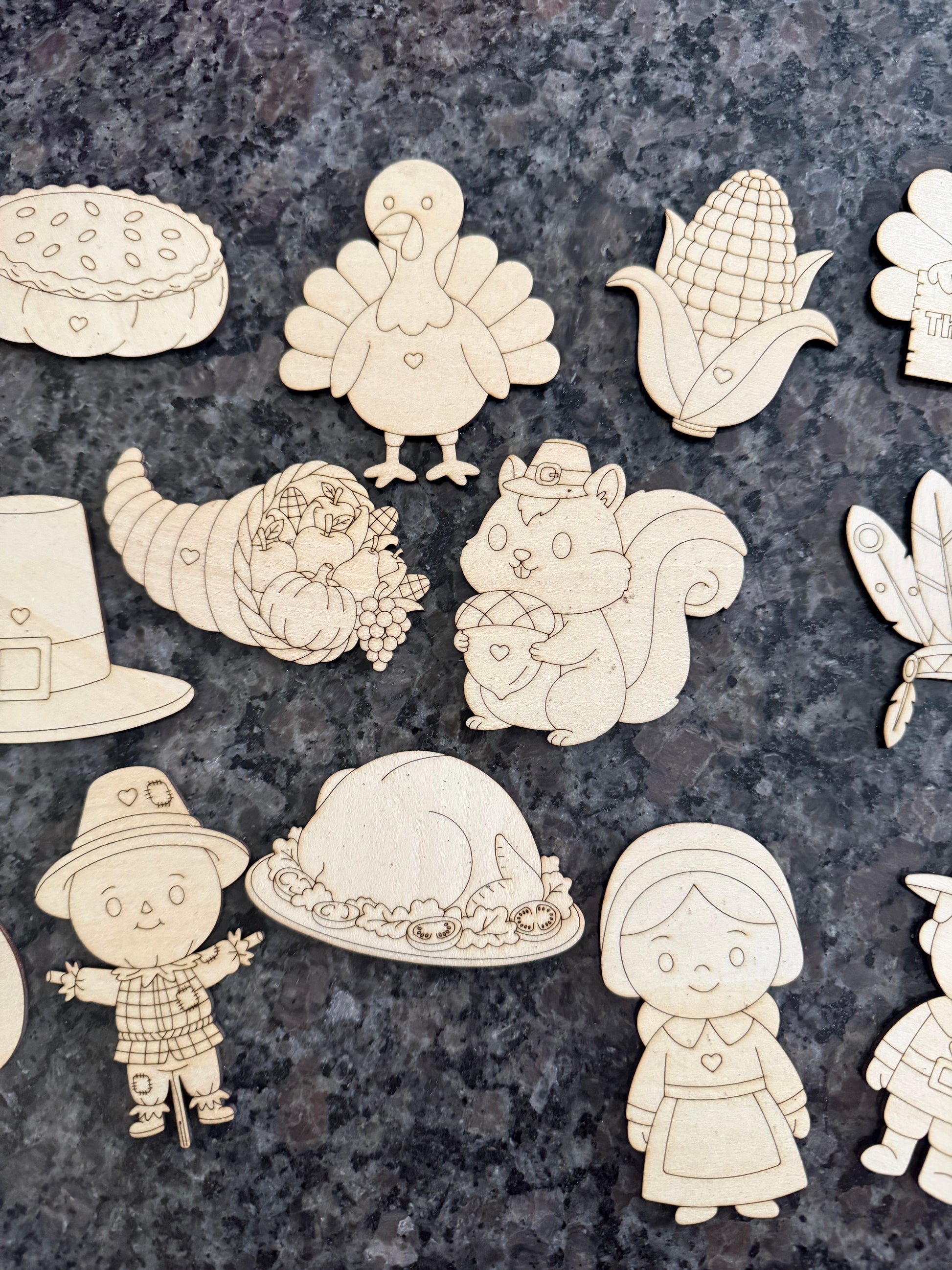 Bring fall fun to life with this adorable 15-piece Thanksgiving wooden cutout set! Each piece is laser-cut from smooth, unfinished wood and ready to paint/color, decorate, or craft with. Perfect for kids’ activities, classrooms, holiday décor, or DIY projects.